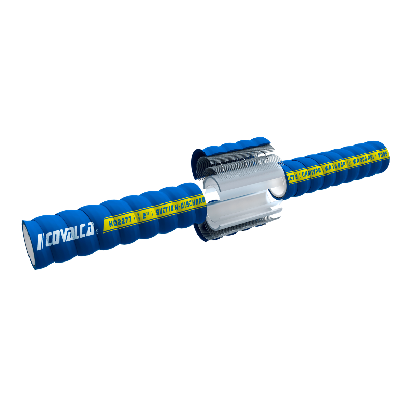 La manguera H02277 está diseñada para operaciones exigentes de succión y descarga de productos químicos, ácidos, solventes agresivos y derivados del petróleo. Su construcción combina resistencia química, seguridad y flexibilidad en una sola solución de alto rendimiento.