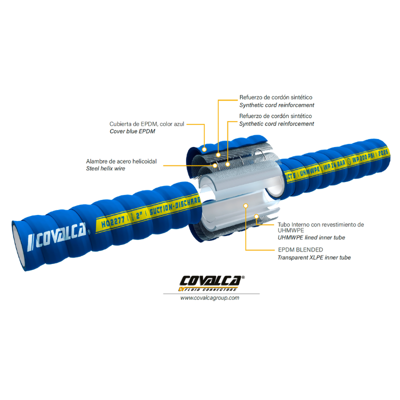 - Tubo Interno: Revestimiento UHMWPE con capa EPDM de alta resistencia química